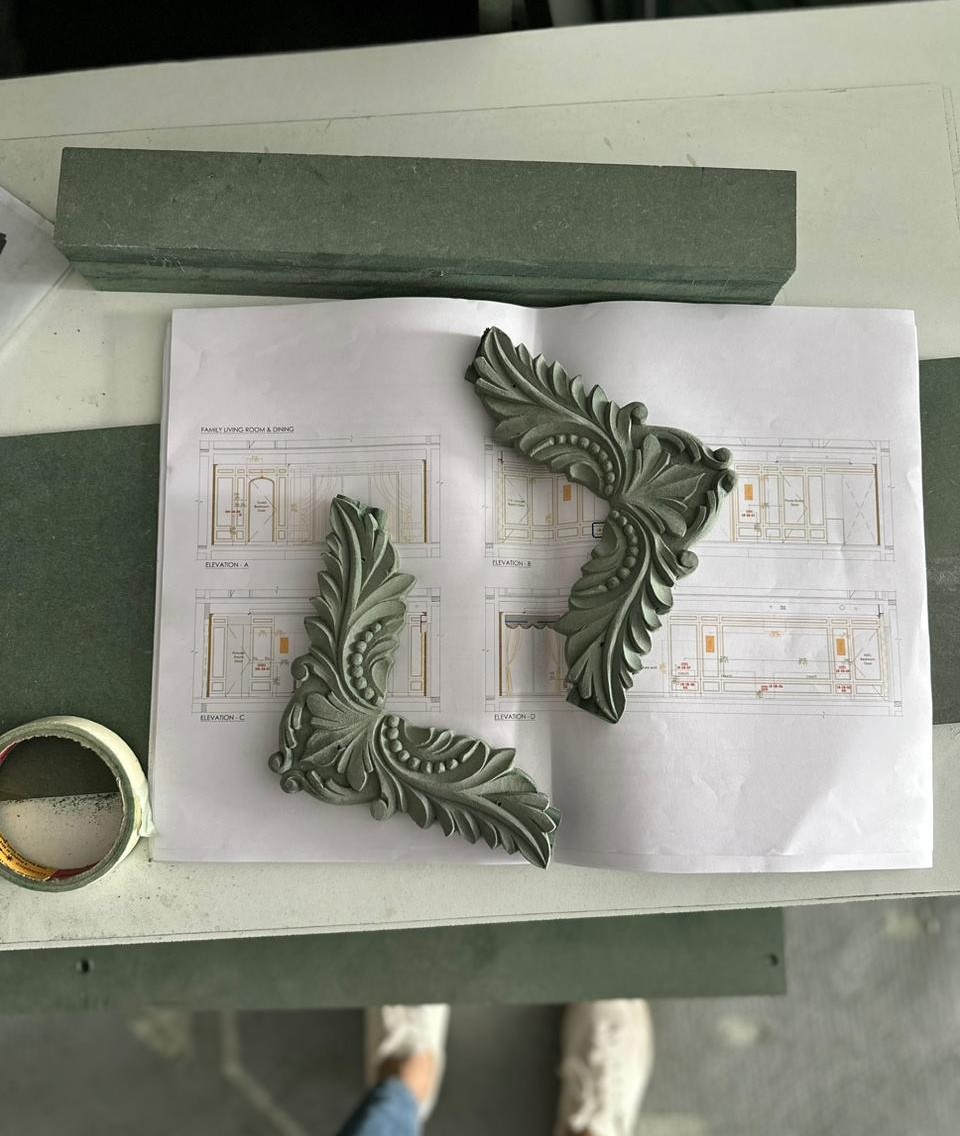 From carved woodwork to hand-painted surfaces, each detail is being shaped slowly and carefully. The material palettes, unfinished corners, and evolving textures seen here are part of a process that values patience over speed.